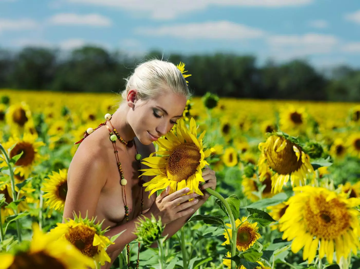 Очаровательная блондинка Adele B обнажилась посреди солнечной цветочной поляны — Adele B