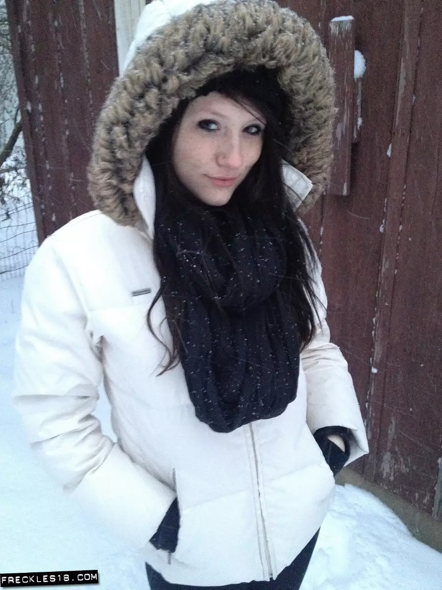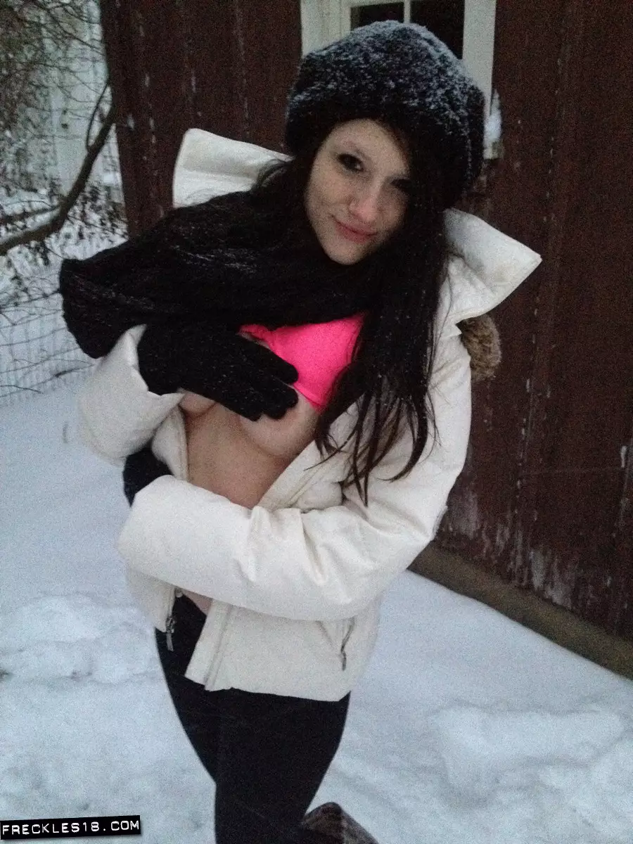 Шаловливая куколка Freckles достаточно смелая чтобы показать свое эротичное белье в морозный зимний день — Freckles