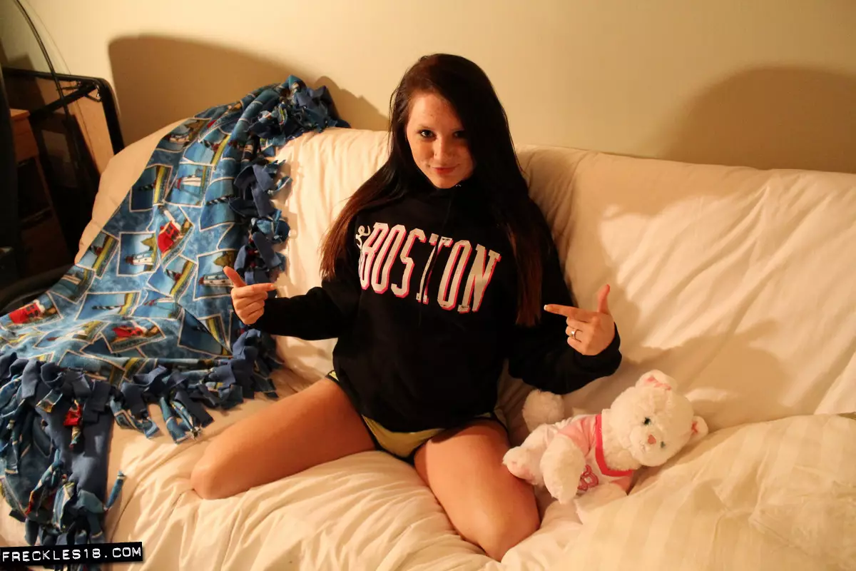 Горячая детка Freckles показывает киску и попку через просвечивающие трусики — Freckles