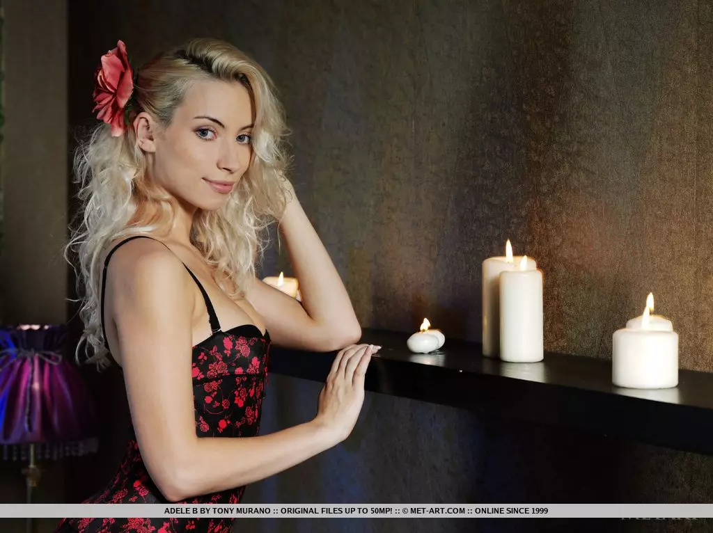 Соблазнительная блондинка Adele B снимает трусики и демонстрирует знойную киску — Adele B