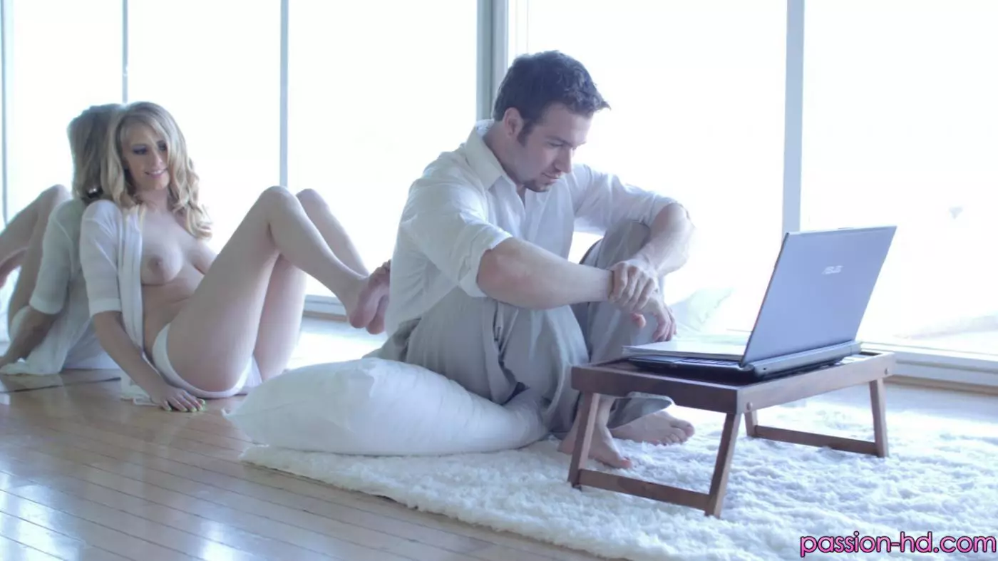 Нежная голая юная блондинка Allie James делает качественный минет и страдает под хозяйской рукой — Allie James