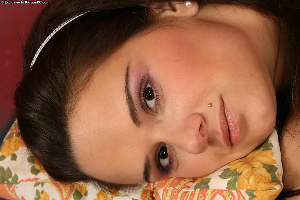Игривая брюнетка Amy Karupspc выставила напоказ бритую киску с пальчиками на ней — Amy Karupspc