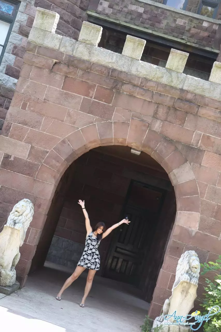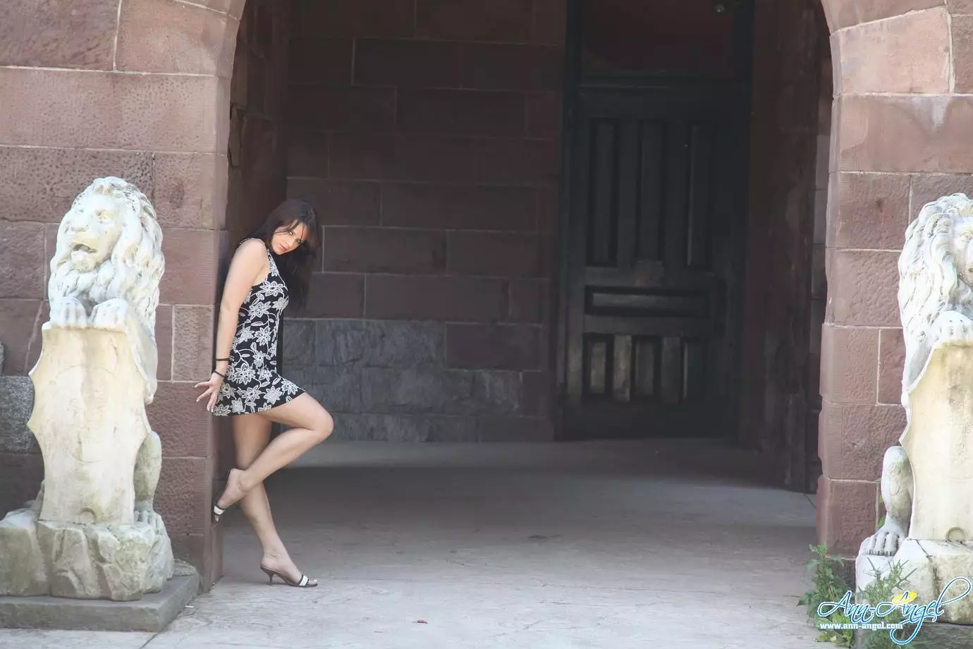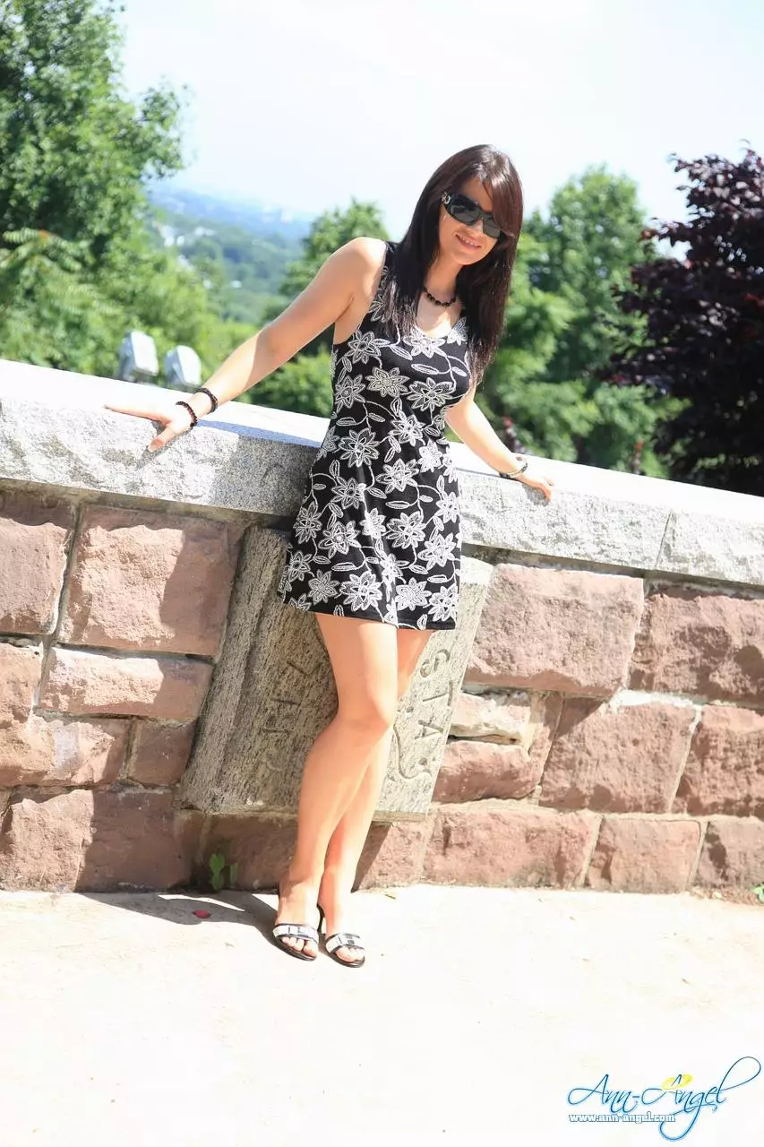 Ann Angel в миниатюрно маленькой летней одежде показывает ножки и засвечивает трусики на открытом воздухе — Ann Angel