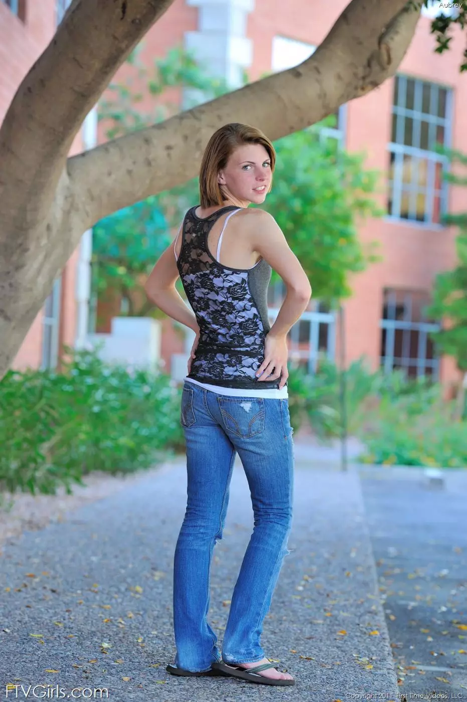 Aubrey Belle снимает джинсы и трусики на улице и показывает свою розовую любовную дырочку — Aubrey Belle