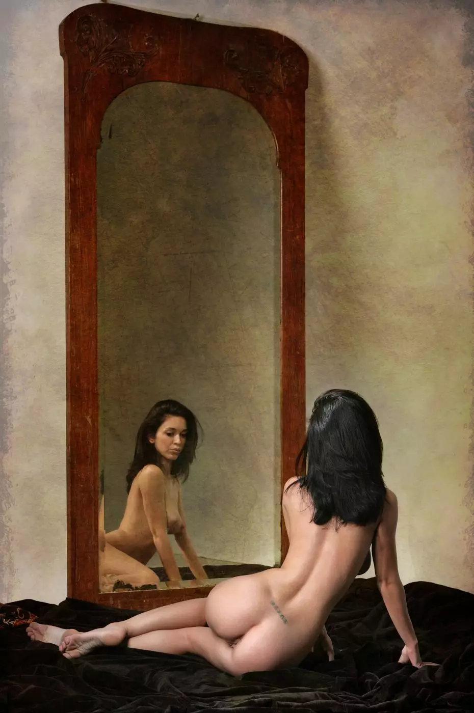 Голая брюнетка Helen H хвастается знойным телом стоя напротив зеркала — Helen H