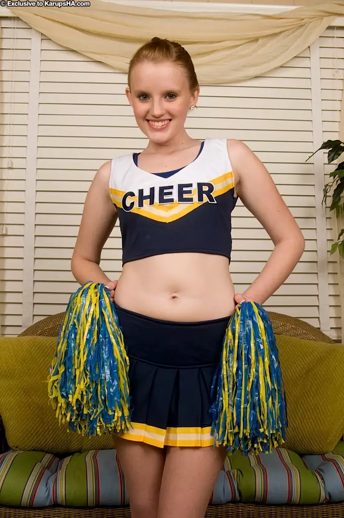 Чирлидерша Katey Grind раздевается и показывает бритую розовую киску — Katey Grind