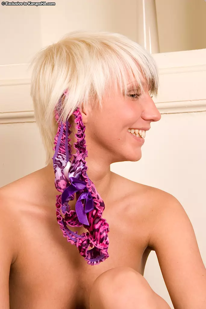 Тоненькая блондинка Katie Leigh любит тереть и трогать пальчиками полностью выбритую киску — Katie Leigh