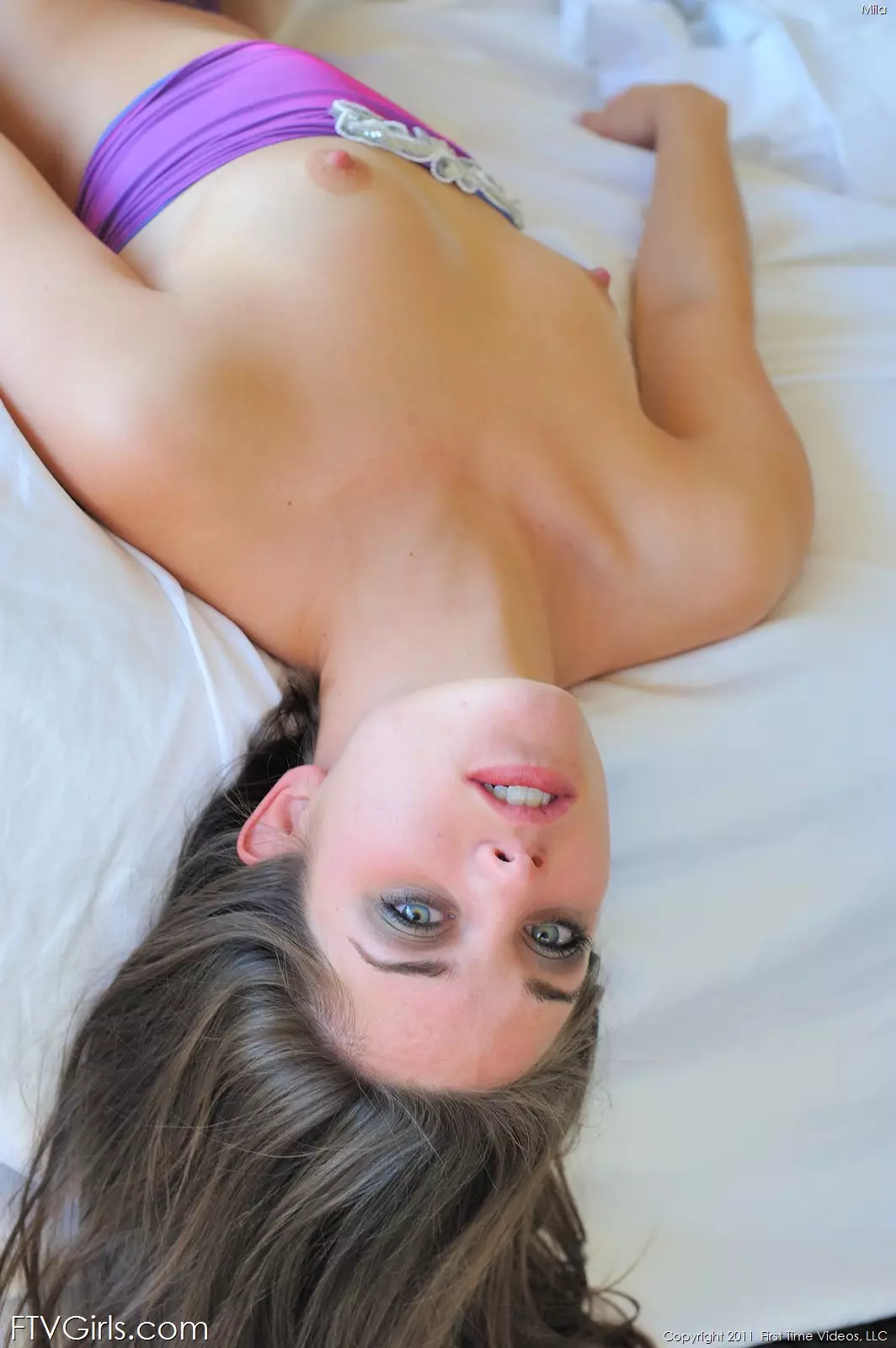 Милая девочка-подросток в сексуальном фиолетовом топе и трусиках Mila FTV показывает свою розовую дырочку — Mila FTV