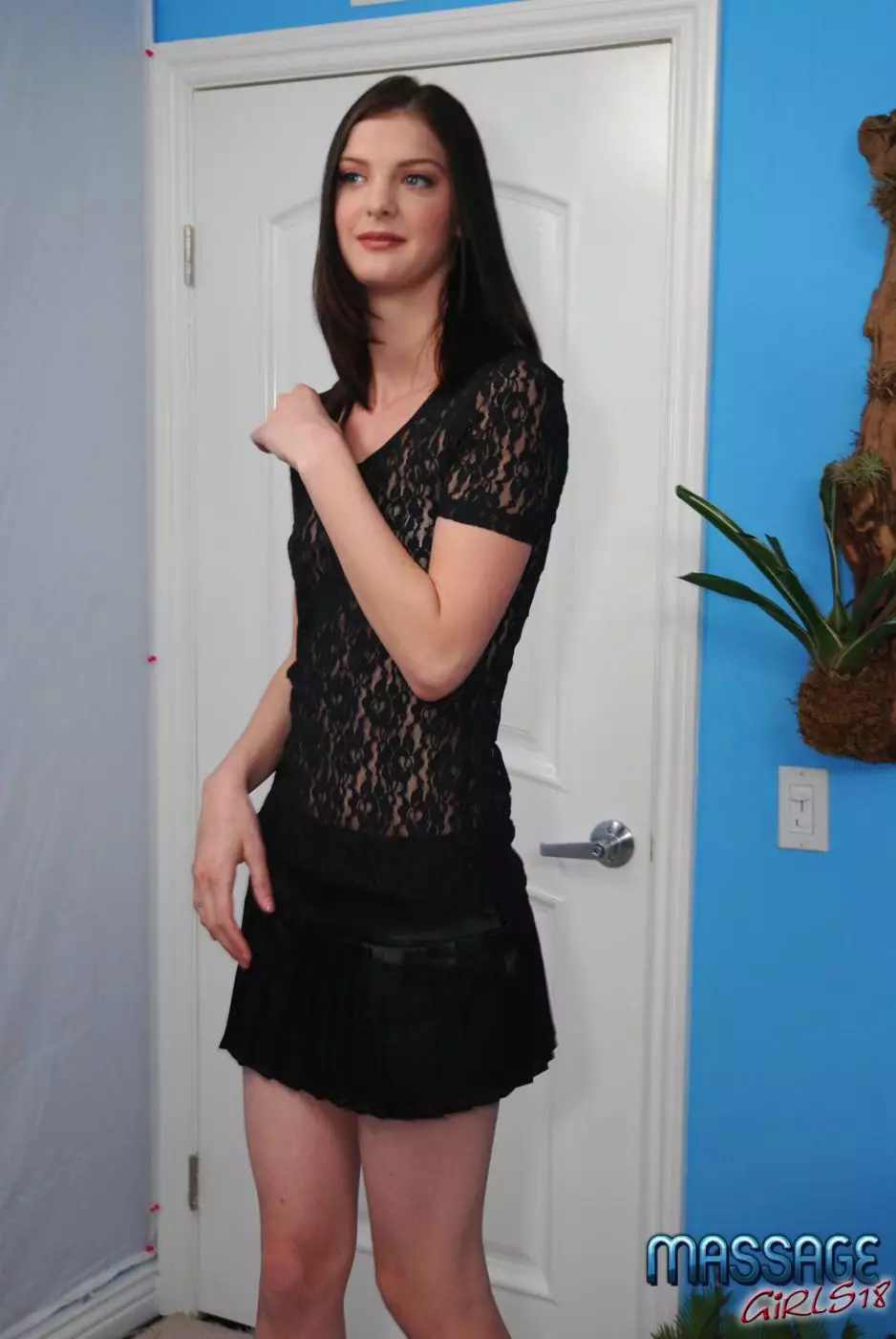 Высокая плоскогрудая юная брюнетка Molly Madison растирает тело мужчины и седлает его поршень — Molly Madison