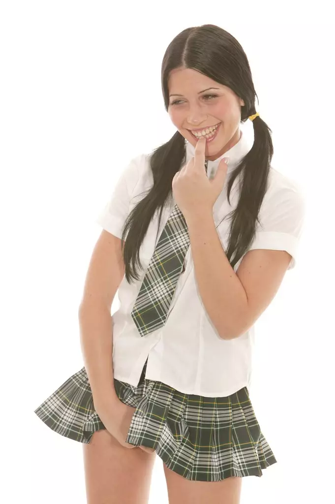 Брюнетка с хвостиками и в униформе Rebecca Linares получает толстый член в свою попку — Rebecca Linares