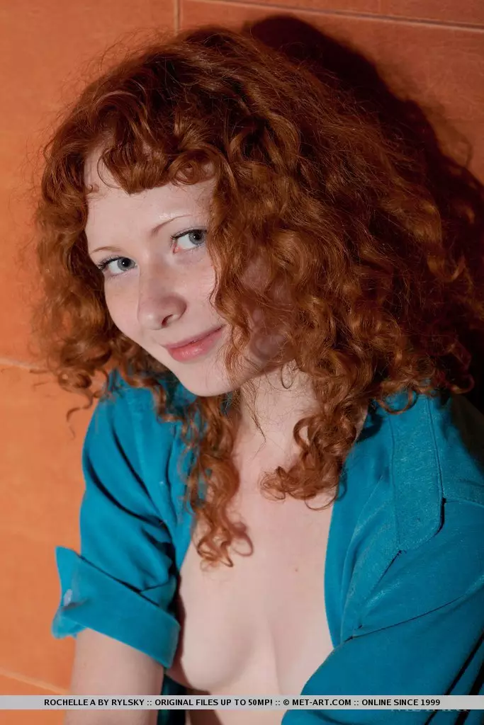 Шлюхастая девочка-подросток с рыжими волосами Rochelle A демонстрирует обнаженное тело на кровати и в ванне — Rochelle A