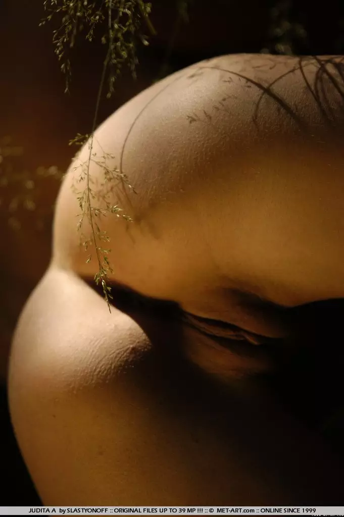 Белокурая девочка Lea Tyron дает рассмотреть свою фирмовую задницу и лысую киску на траве — Lea Tyron
